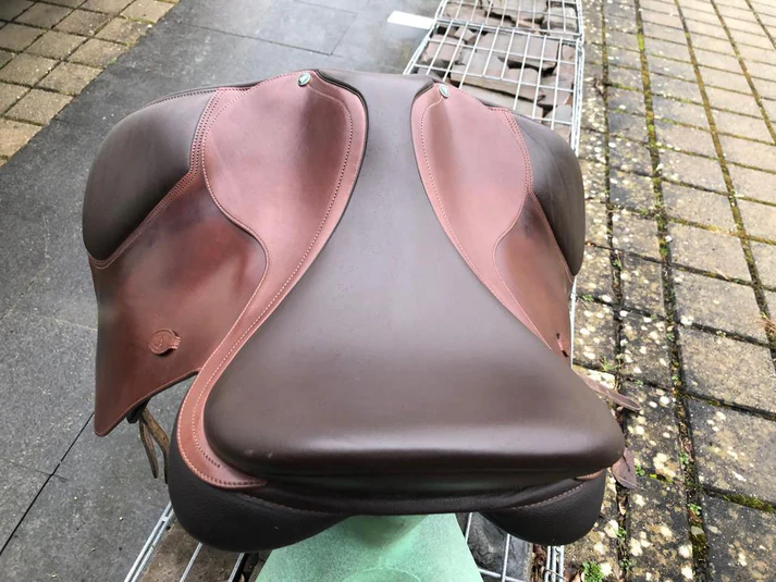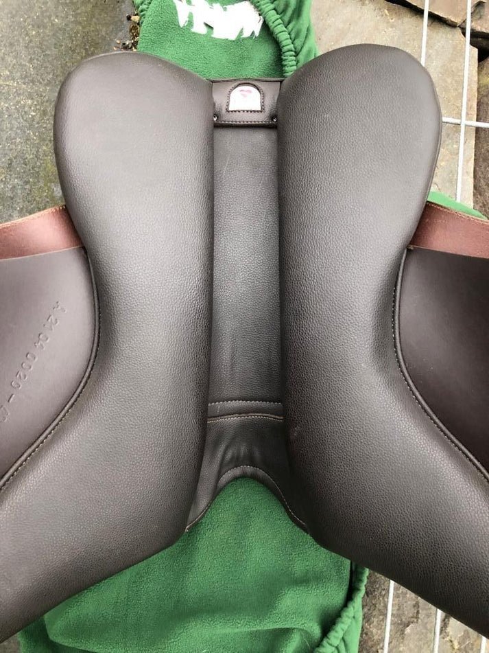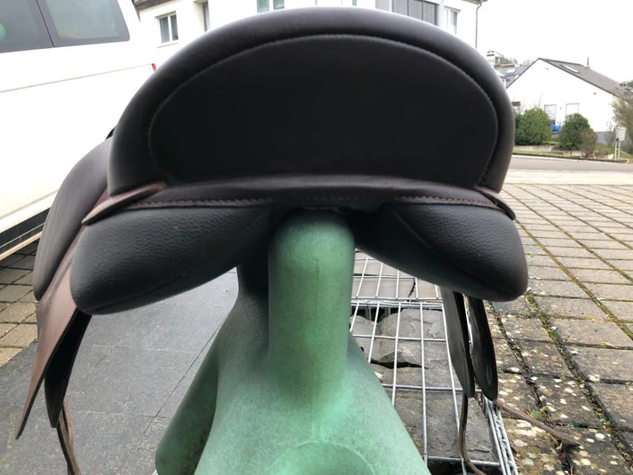 Dieser Arena Saddles All Purpose 17″ Braun Vielseitigkeitssattel (Sattelnummer A21040020-43) ist ein Einzelstück in gutem Zustand. Allroundsättel mit 35 cm Kammerweite und austauschbarem Kopfeisensystem speziell für breite Pferde sind auf dem deutschen Gebrauchtmarkt selten in dieser Preisklasse verfügbar.