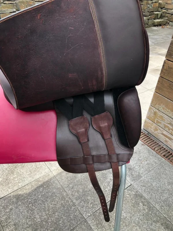 Im täglichen Einsatz wird der Sattel direkt auf dem Pferderücken platziert, mit einer passenden Sattelunterlage kombiniert und über lange Gurtstrippen befestigt. Die langen Gurtstrippen halten die Schnallen weit unterhalb des Ellbogens und lassen den Schenkelsitz vollständig ungestört, was im Dressurreiten wo ein ruhiger langer Unterschenkel das Fundament jeder Hilfe ist unmittelbar spürbar wird.