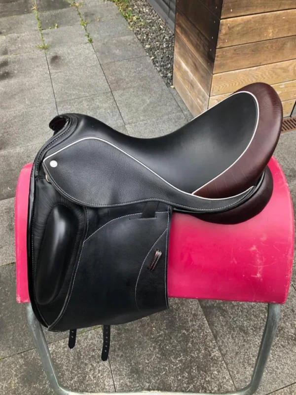 Custom Icon Alpha 18″ Schwarz Dressursattel ist ein Gebrauchtsattel der zeigt was passiert wenn ein Hersteller handwerkliche Qualität mit einem klaren Blick für Details verbindet. Baujahr 2021, sehr guter Zustand, und eine Kombination aus Designdetails die diesen Sattel auf dem Viereck sofort erkennbar macht. Erhältlich auf satteldeutschland.de mit Versand nach Deutschland, Österreich, der Schweiz und in die gesamte EU.