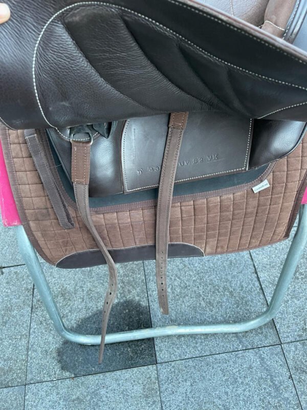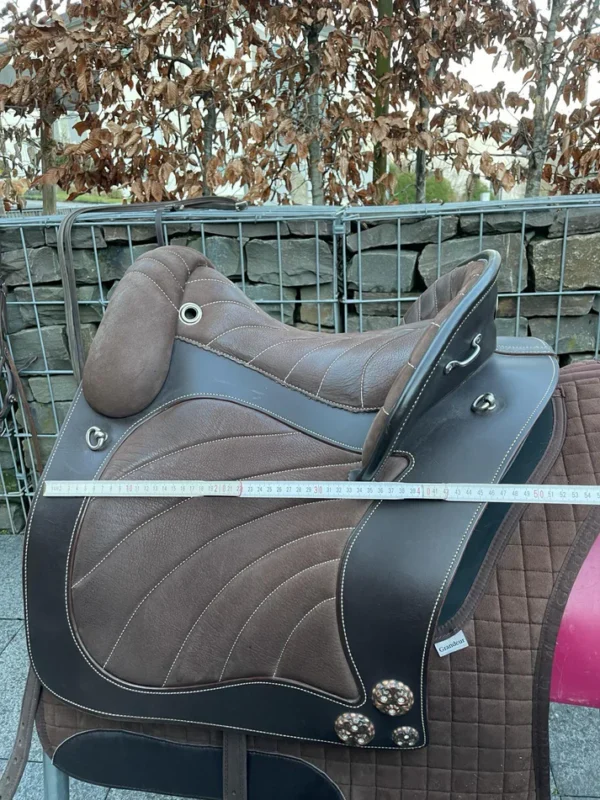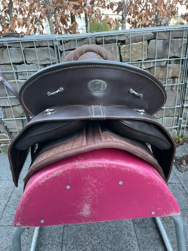 Deuber & Partner Espera S2 brown Chesnut baroque saddle ist ein außergewöhnlich komfortabler Premiumbarocksattel der deutschen Traditionsmarke Deuber & Partner – entwickelt für Reiter, die höchsten Anspruch an Sitzkomfort, edles Design und optimale Passform in einem Barocksattel stellen. In seiner warmen Chestnut-Brauntönung mit stufenlos verstellbarer Kammerweite und dem bewährten Ultra Flex Baum setzt der Espera S2 sowohl optisch als auch funktional Maßstäbe. Besonders hervorzuheben ist das einzigartige Komplettangebot – dieser Sattel wird zusammen mit einem passenden Zaumzeug, Brustblatt und Gurt angeboten und bietet damit einen außergewöhnlichen Mehrwert, der auf dem Markt selten zu finden ist. Auf satteldeutschland.de erhalten Sie dieses komplette Reitsport-Ensemble in gutem Zustand aus dem Baujahr 2020 – geprüft, ehrlich beschrieben und versandfertig in die gesamte EU.