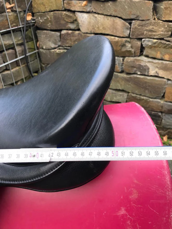 Auflagefläche von 50 cm: Diese außergewöhnlich große Auflagefläche verteilt das Reitergewicht über einen deutlich größeren Bereich des Pferderückens als Standardsättel mit 44–47 cm Auflagefläche. Für breite Pferde mit entsprechend dimensioniertem Rücken ist diese Verteilung entscheidend für Komfort und Rückengesundheit.