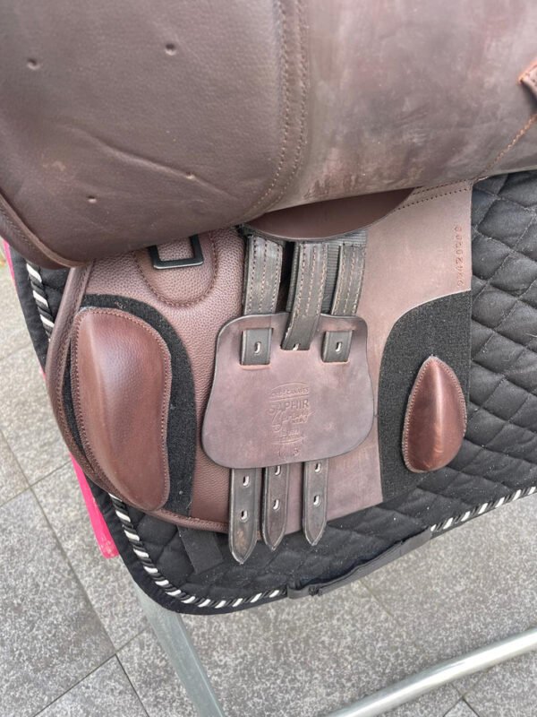 Die Chocolate-Färbung des Saphir Neo ist eine warme, satte Brauntönung – eine elegante Alternative zum ubiquitären schwarzen Springsattel, die dem Sattel einen individuellen, hochwertigen Charakter verleiht. Chocolate-Braun auf Leder ist eine klassische, zeitlose Farbgebung, die sowohl im Dressurviereck als auch im Springparcours professionell und elegant wirkt – ein Sattel, der auffällt, ohne aufdringlich zu sein.