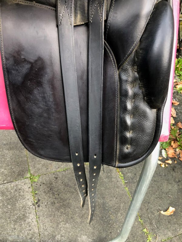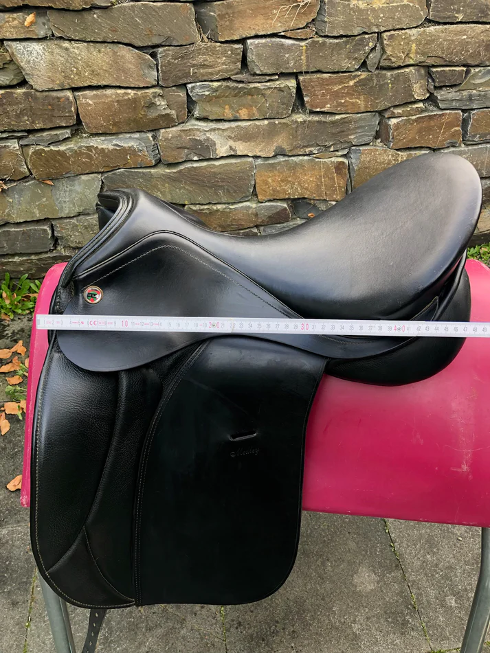 Karl Niedersüss Medley 18″ Schwarzer Dressursattel ist ein Gebrauchtsattel der mit einem konstruktiven Detail punktet das bei vielen Reitern unterschätzt wird bis sie es einmal genutzt haben: das wechselbare Kopfeisen. Normale Gebrauchsspuren, sofort einsatzbereit, aktuell auf Kammerweite M=mittel eingestellt. Erhältlich auf satteldeutschland.de mit Versand nach Deutschland, Österreich, der Schweiz und in die gesamte EU.