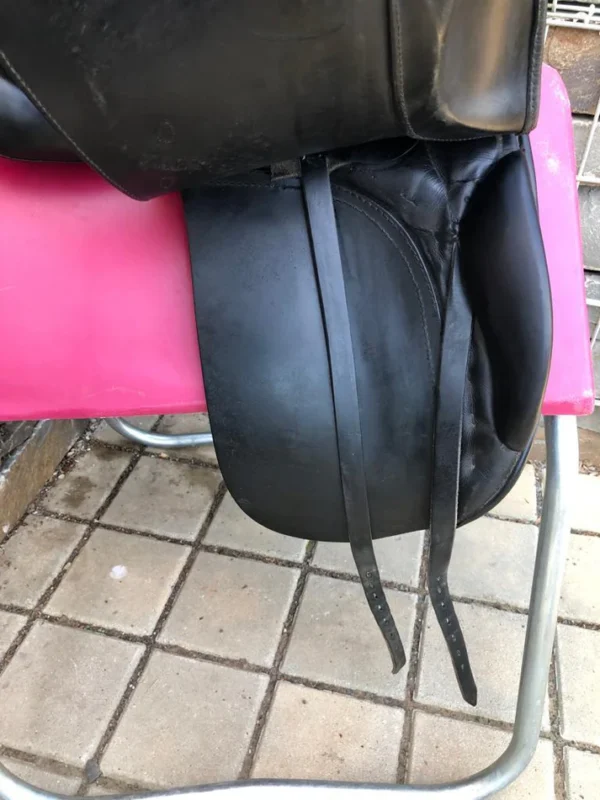 Im täglichen Einsatz wird der Sattel direkt auf dem Pferderücken platziert, mit einer passenden Sattelunterlage kombiniert und über lange Gurtstrippen befestigt. Die langen Gurtstrippen halten die Schnallen weit unterhalb des Ellbogens und lassen den Schenkelsitz ungestört, was im Dressurreiten wo ein ruhiger langer Unterschenkel das Fundament jeder Hilfe ist direkt spürbar wird. Die festen Pauschen geben dem Oberschenkel klaren definierten Halt.