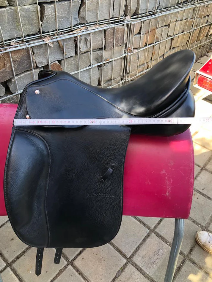 Die 17″ Sitzgröße ist die kompakteste der gängigen Dressursattelgrößen. Für Reiter die in einem kleinen Sitz präziser sitzen und feiner kommunizieren als in einer größeren Sitzfläche ist der Münchhausen in dieser Größe eine seltene Gelegenheit auf dem Gebrauchtmarkt.