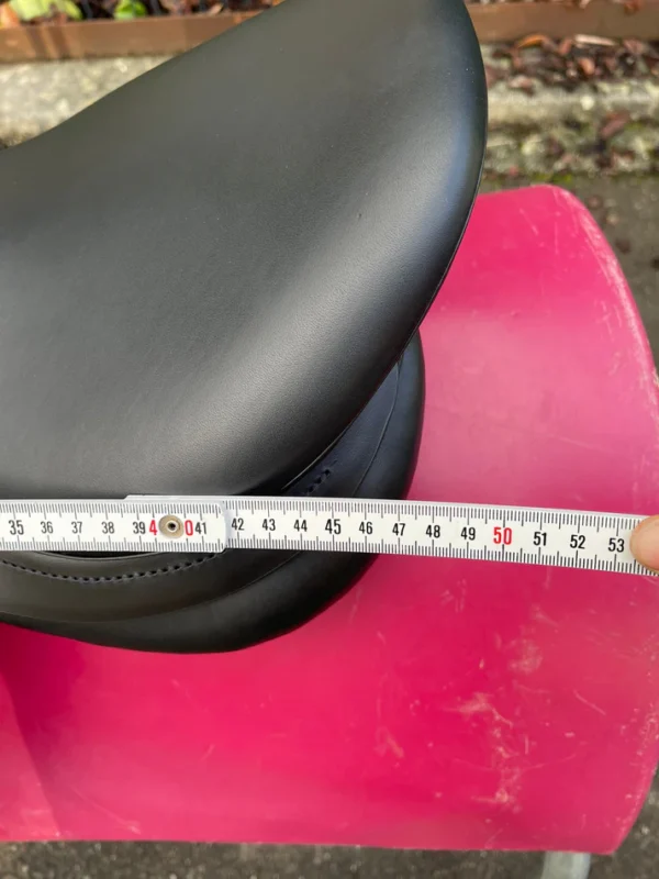 Die 18″ Sitzgröße gibt dem Reiter Raum ohne die Verbindung zum Pferd zu verlieren. Der halbtief gestaltete Sitz führt in eine ausgewogene Position die für den Parcours genau richtig ist, stabil genug für sichere Sprünge, offen genug für einen aktiven, mitbewegenden Reitstil.