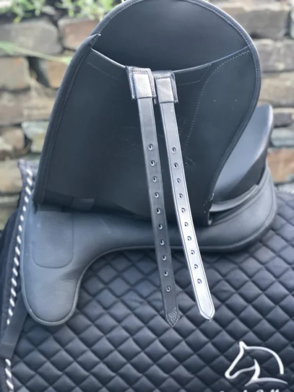 Im täglichen Einsatz wird der Sattel direkt auf dem Pferderücken platziert, mit einer passenden Sattelunterlage kombiniert und über lange Gurtstrippen befestigt. Die langen Gurtstrippen halten die Schnallen unterhalb des Ellbogens und lassen den Schenkelsitz ungestört, was im Dressurreiten wo ein ruhiger langer Unterschenkel das Fundament jeder Hilfe ist direkt spürbar wird.