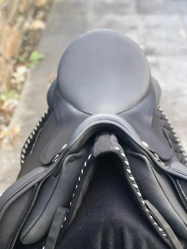 1. Dressur & Flatwork: Der halbtiefe Sitz positioniert den Reiter ausbalanciert und stabil über dem Schwerpunkt des Pferdes – eine solide Grundlage für dressurorientierte Arbeit auf allen Niveaus. Das leicht vorgeschnittene normale Sattelblatt ermöglicht einen langen, natürlichen Schenkelsitz für feine, differenzierte Hilfegebung. Die Klettpauschen lassen sich individuell positionieren und bieten je nach Anforderung die passende Führung im Oberschenkelbereich. Die großzügige Sitzfläche von 18″ bietet größeren Reitern den nötigen Komfort für längere Trainingseinheiten.
